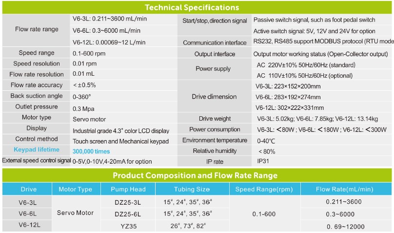 정밀정량 대용량 분주용 튜브연동식펌프 V6 Series
