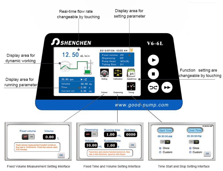 유량 연동 펌프로 터치 스크린 제어 기능이 있는 4.3" 컬러 디스플레이, 0.1-600rpm의 speed range, 최대 24,000ml/min까지의 처리용량 등 Intelligent Type의 분주용 / Dispensing, 산업용 페리스탈틱 펌프입니다. Calibration, Dispensing, External Control 기능을 지원하고 있어, 정밀 이송 및 분주를 목적으로 하는 제약, 화학, 화장품 등의 생산라인에서 폭넓게 사용될 수 있습니다.
